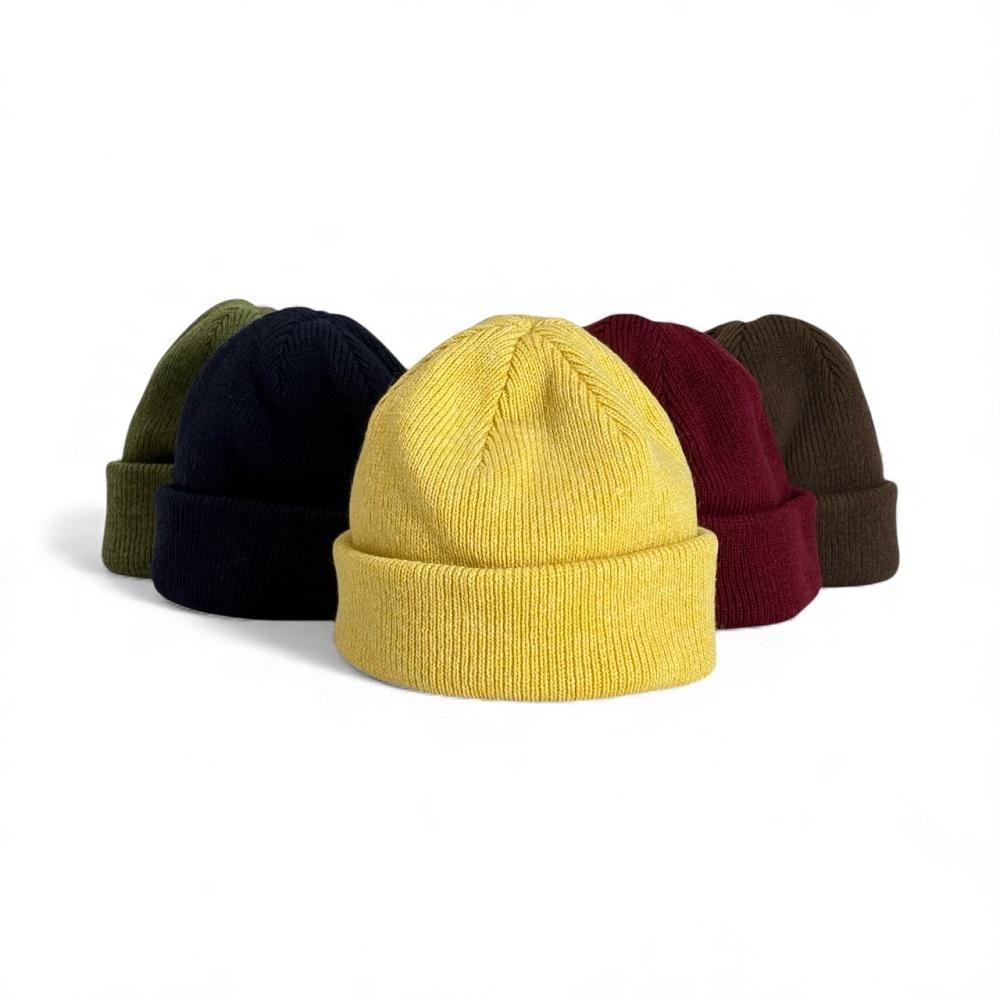 オフスケール加工を施したウォッシャブル紡毛糸を使った定番のニットキャップです。